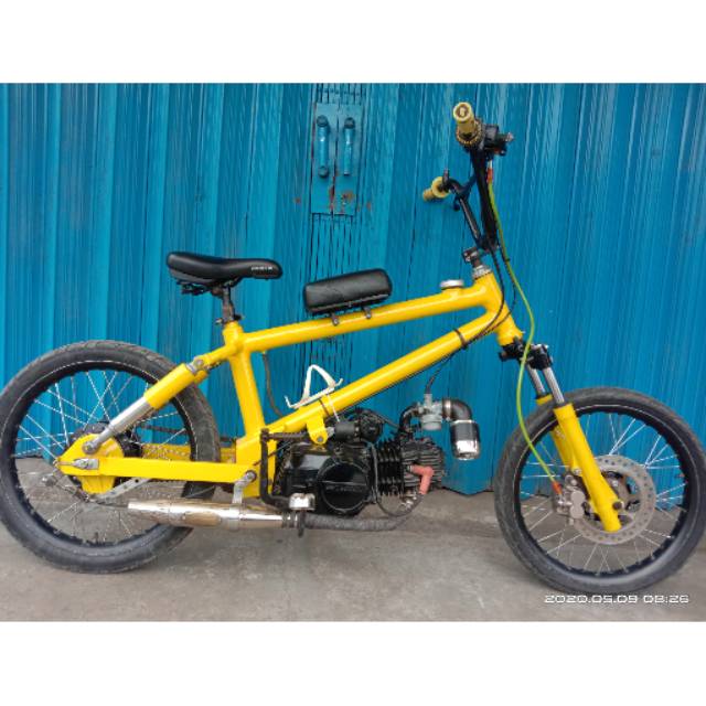 Bmx bermesin motor cub x bikeexif saya selalu ingin membangun bmx dengan mesin motor. Harga frame sepeda bmx cub untuk mesin motor bebek frame bmx cub rp1 750 000 harga sepeda bmx senator 16 inch warna biru putih rp775 000 harga frame rangka sepeda 20 bmx oldschool oryx osbmx double downtube rp925 000. Tapi sepeda motor buatan shaun walker dari down out ini punya daya tarik yang lain yaitu pada kaki kakinya. Ari supriyanto punggawa protechnic motor bengkel custom di bilangan rempoa tangerang selatan mengatakan walau pada dasarnya memakai sasis sepeda bmx dan diberi mesin tapi caranya pun.