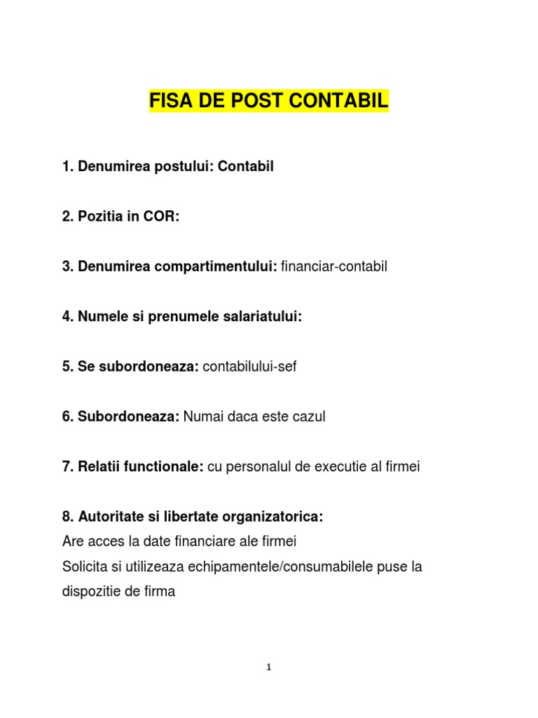 Scopul general al postului. Legat de activitatile specifice raspunde de. Fisa postului contabil fisa evaluare profesionala personalizata raport evaluare calculator si documente cu explicatii. In esenta cookie urile ne ajuta sa imbunatatim continutul de pe site oferindu va dvs.