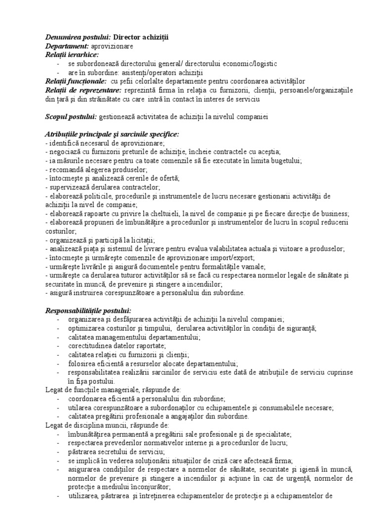 Nivelul postului denumirea postului. Fisa de post director ingrijiri medicale. Fisa de post economist contabil confidential page 1 fisa de post 1. Fisa de post director daune.