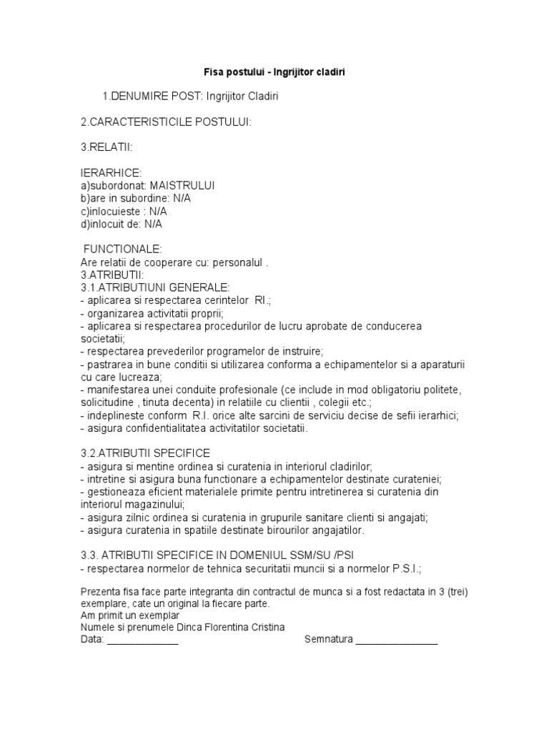 Fisa postului gratuit. Fișa de post asistent manager model gratuit editabil fișa de post asistent manager model gratuit editabil pin fisa postului asistent manager glutenul un pericol nebanuit. Analiza si evaluarea fisei postului la sc geo earth srl pagina 1 pagina 2 pagina 3. Specialist securitate si sanatate in munca psi inspector protectia muncii i. Fisa postului este un document obligatoriu dupa cum sigur stiti.