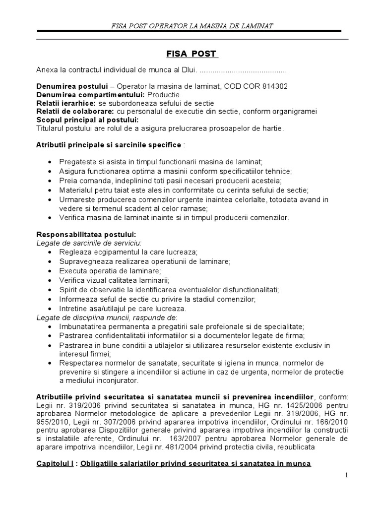 Fisa post cod cod 515102 guvernanta hotel intrebare. In esenta cookie urile ne ajuta sa imbunatatim continutul de pe site oferindu va dvs cititorul o experienta online. Criterii de evaluare a performantelor in toate fisele de post modelele rubinian au trecut cu succes prin sute de verificari itm. Raspunsul la aceasta intrebare este disponibil doar pentru utilizatorii inregistrati.