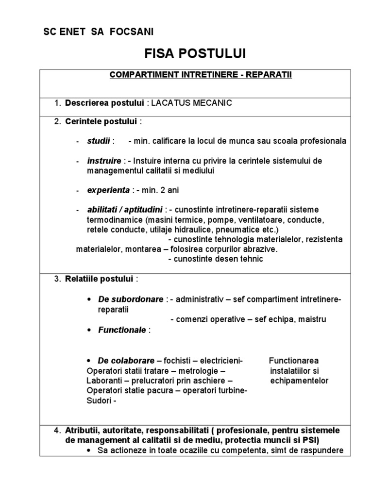 Fisa postului lacatus mecanic. Fisa postului lacatus mecanic inclusiv de intretinere si reparatii universale fisa evaluare profesionala personalizata raport evaluare calculator si documente cu explicatii. Fisa de post lacatus mecanic. Comanda acum fisa postului lacatus mecanic sava marius claudiu tel. Director general director adjunct director tehnic director executiv responsabil managementul calitatii sef punct lucru.