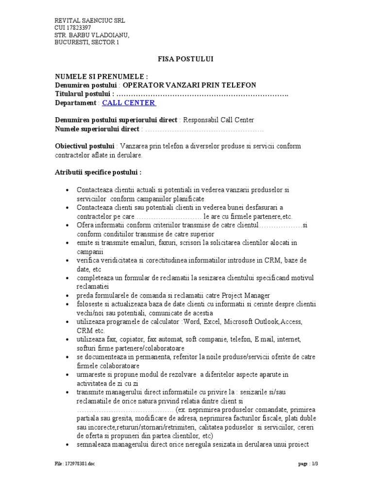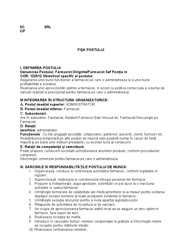 Baile de aburi ace de depilat pensete lampi lupe cosmetice medicinale si decorative masti creme lotiuni farduri. Echipa leaveboard vă oferă un ghid gratuit despre fișa postului. Articole similare model fisa de post pentru zugrav. Cu personalul de executie al firmeirelatii functionale.