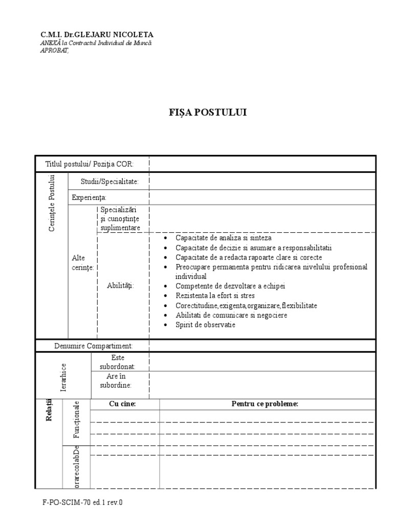 Nutritionist si asistent nutritionist. Fisa postului optometrist documente evaluare. Cerințelor postului respectă regulamentul de ordine interioară regulamentul de organizare și funcționare codul de conduit al personalului contractual al spitalului clinic județean mureș respectă secretul professional cunoaște și respectă codul de etică și deontologie al. Sc natur clinic srl.