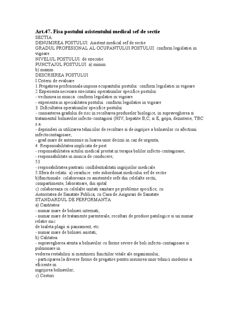 Fisa postului nutritionist. Login or register free and only takes a few minutes to participate in this question. Fisa postului asistent medical laborator. Sarcinile de munca stabilite in fisa postului de medic medic generalist medic ginecolog chirurg asistent medical laborant farmacist dentist stomatolog technician laborant technician dentist infirmier veterinar fizioterapeut nutritionist psiholog radiolog brancardier infirmier ingrijitor se stabilesc numai in functie de felul. Cu toate acestea nu ne asumăm nici o răspundere ori responsabilitate în ceea ce le priveşte.