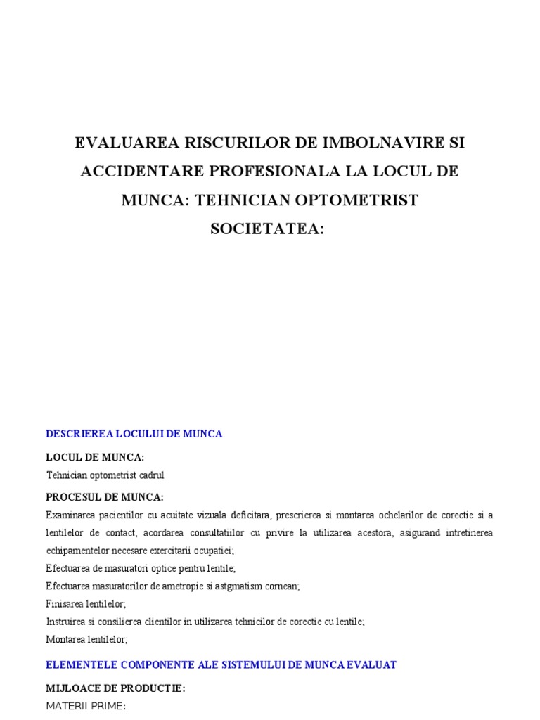 Fisa postului optometrist. Fisa de post portar. Fisa de post pompier. Fisa de post patiser. Fisa postului optometrist documente evaluare profesionala.