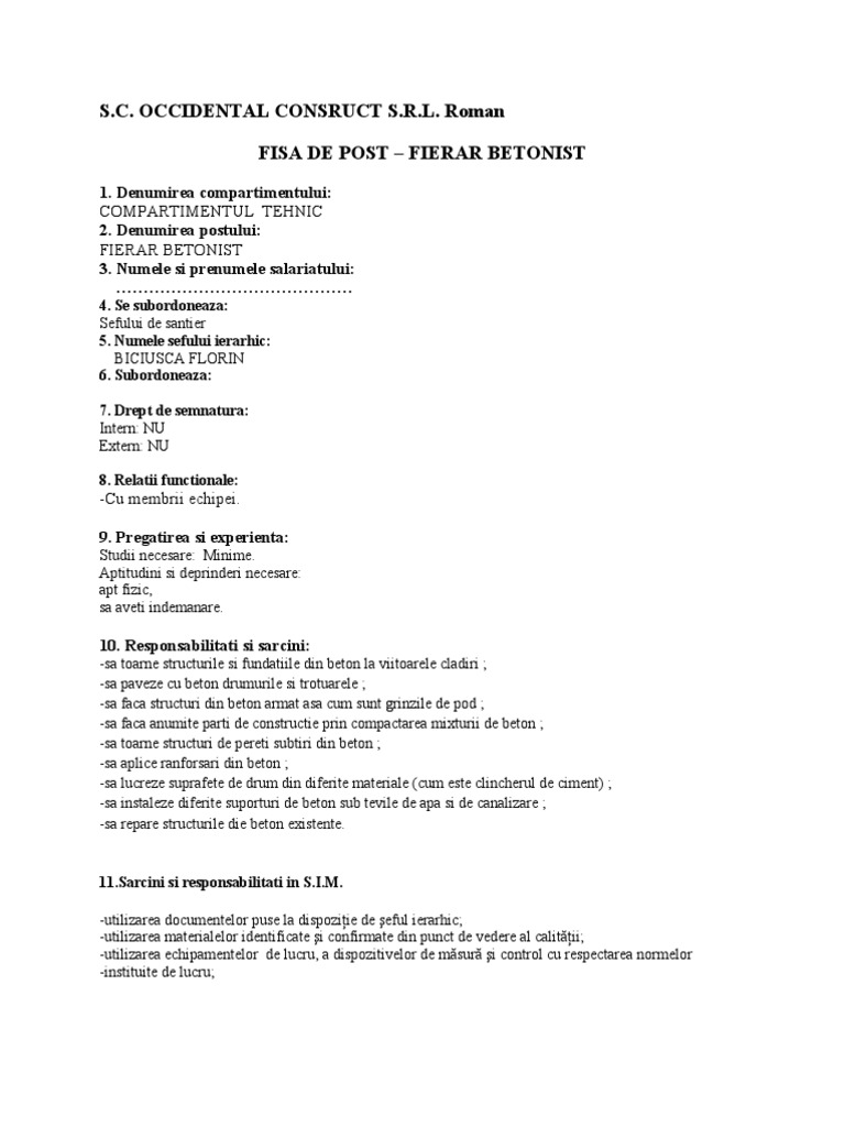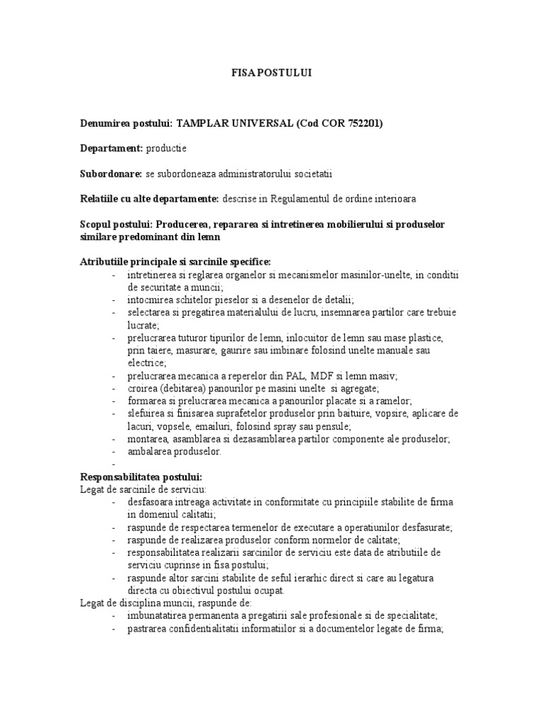 Adaugă în coș. Criterii de evaluare a performantelor in toate fisele de post modelele rubinian au trecut cu succes prin sute de verificari itm. Fişa postului tamplar în temeiul legii nr. Pregatirea furnirelor estetice si a inlocuitorilor.