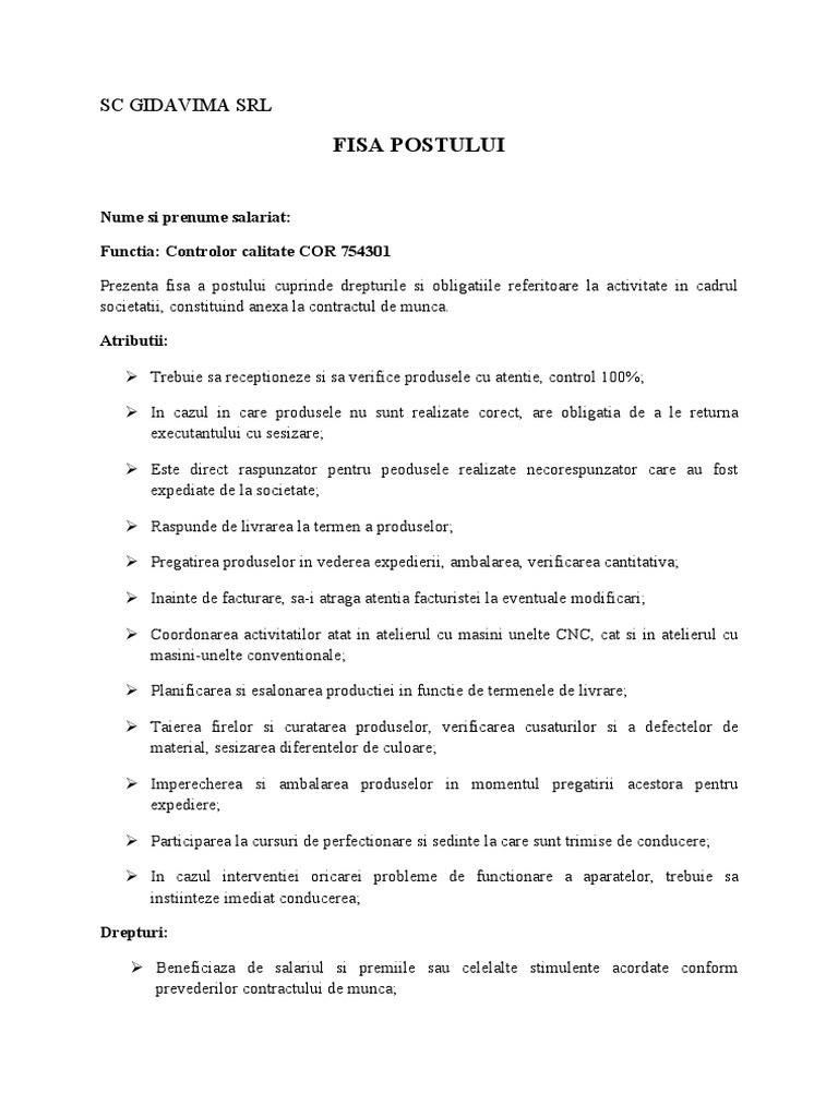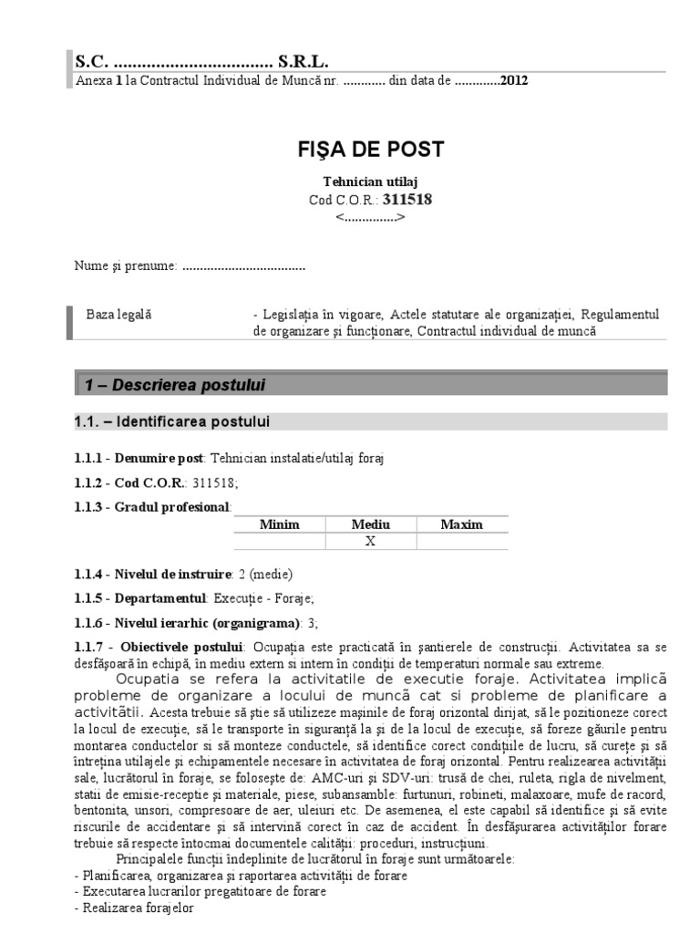Fisa postului tehnician it. 311206 tehnician topometrist fisa postului fise de post fisa post regulament de ordine interioara. 3513 în cazul în care denumirea postului din firma dvs. Clic aici pentru a te convinge de utilitatea raspunsurilor oferite de expertii portalcodulmuncii ro. Fisa de post pentru un tehnician echipamente de calcul si retele de mihaela croitoru 12 aug.