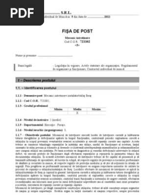 Fisa postului tehnician mecanic. Nume si prenume salariat 4. Fisa postului pentru tehnician mecanic. Iata fisa postului pentru un tehnician electromecanic conform portalcodulmuncii ro. Fisa postului pentru asistenta medicala medicina dentara.