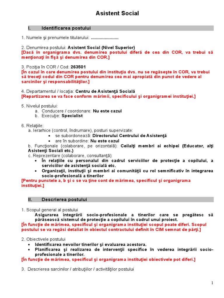 Fisa postului unui asistent social. Fisa de post asistent social fisa de post asistent social fisa postului asistent social fisa de post asistent social 2018 sunt un ong va rog sa ma ajutati cu fisa de post solicitata mai jos si cu acodul de mediatizare pentru beneficiari angajati voluntari si apartinatori parinte tutore. Asistent social modele fise de post vreau sa primesc ultimele noutati prin e mail. Nivelul de studii 4 studii superioare fisa postului asistent social nivel superior. Asistentul social indeplineste o misiune sociala.