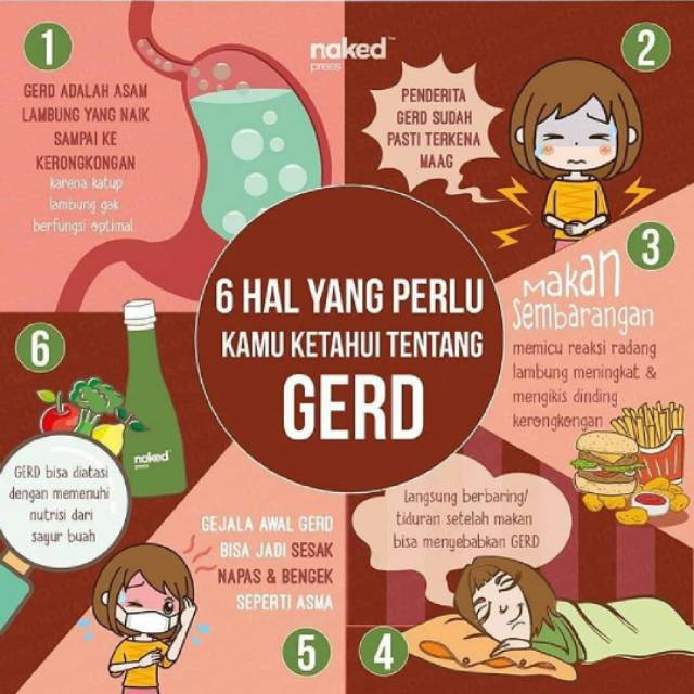 Gerd gastroesophageal reflux disease atau penyakit asam lambung disebabkan oleh melemahnya katup atau sfingter yang terletak di kerongkongan bagian bawah. Secara singkat gerd gastroesophageal reflux disease adalah kondisi di mana naiknya asam lambung ke kerongkongan dan menyebabkan rasa terbakar. Akan tetapi dapat juga dipicu oleh refluks asam lambung alias gerd. Asam lambung naik atau penyakit asam lambung bisa dialami oleh orang dewasa maupun anak anak.